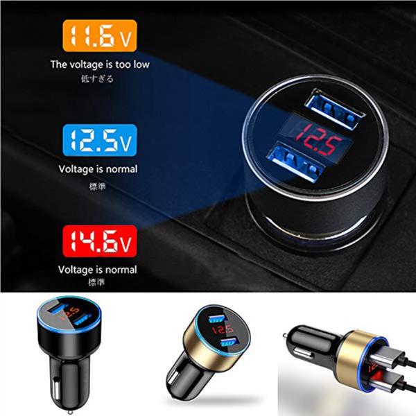 シガーソケット USB 2ポート 電圧計付き 車載 充電器 車載充電器 急速充電 車用 スマホ タブレット 分配器 カーチャージャー コンパクト 増設 LSF-020
