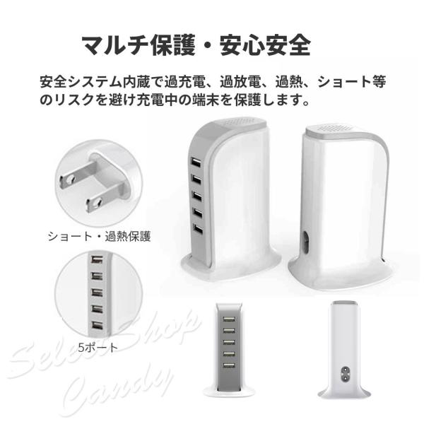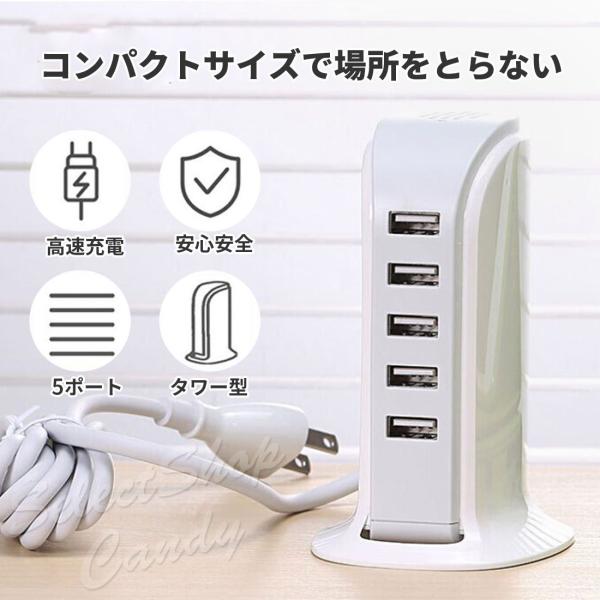 送料無料 5ポート急速充電 ACアダプター 4A USB急速充電器 タワー式 電源タップ USBコンセント LSF-060