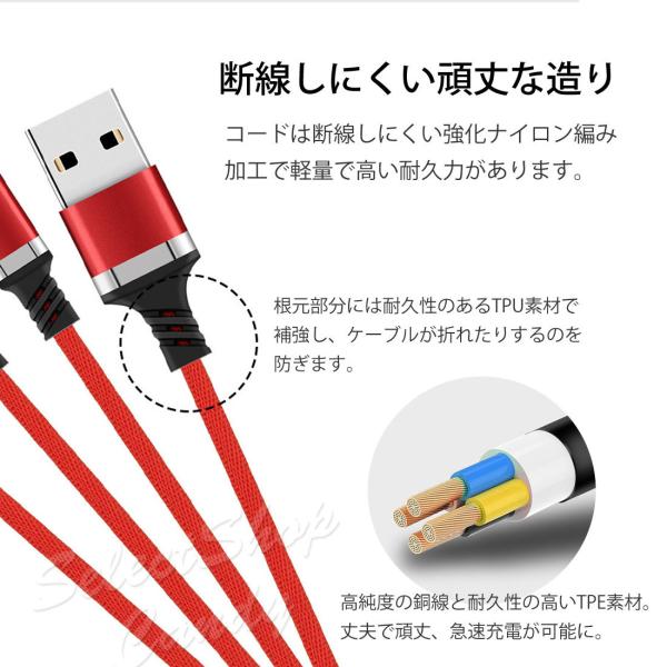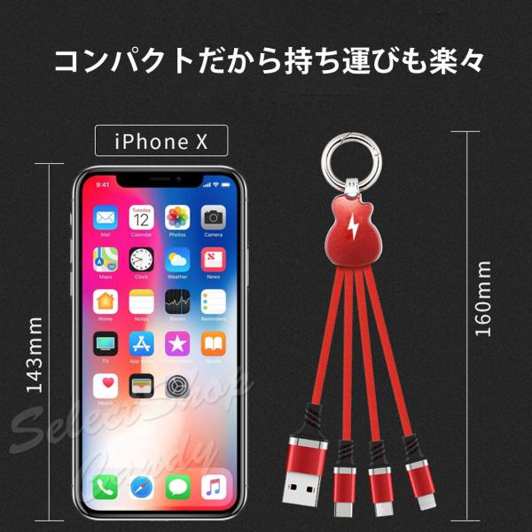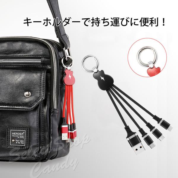 充電ケーブル 3in1 USBケーブル ストラップ キーホルダー マルチケーブル iPhone Micro USB Type-C ライトニング アンドロイド ケーブル LSF-063