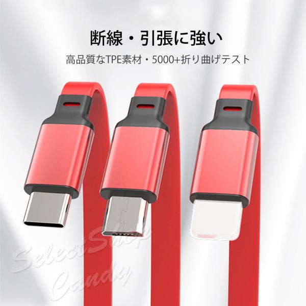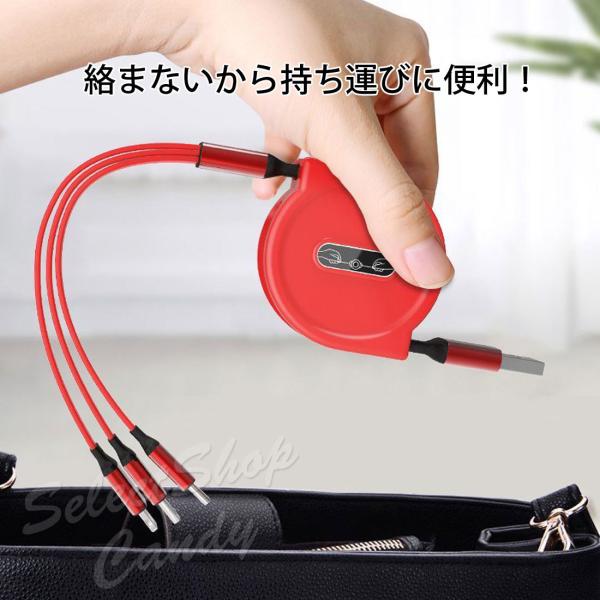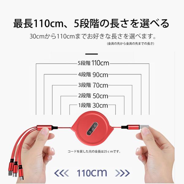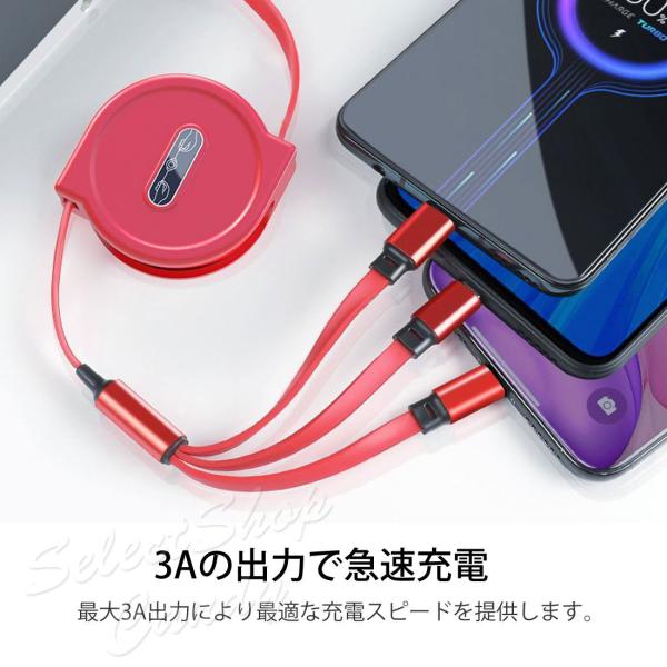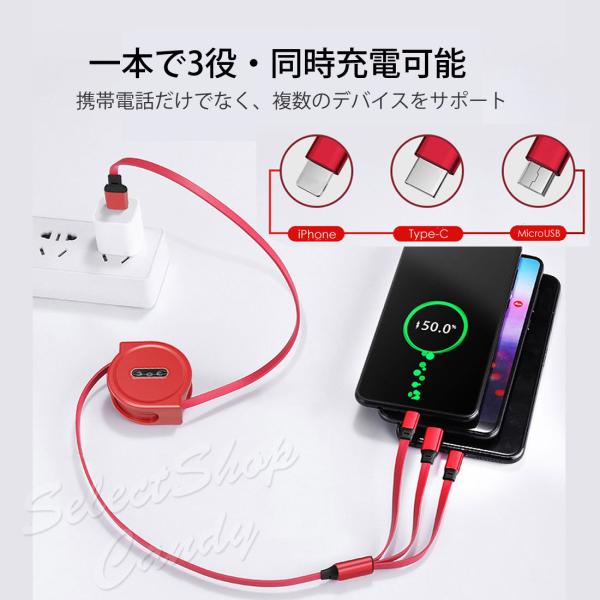 SALE中 充電ケーブル 充電コード 3ni1 リール式 巻き取り アイフォン アンドロイド タイプC マイクロUSB ケーブル収納 両面挿入 iPhone Android Type-c LSF-064