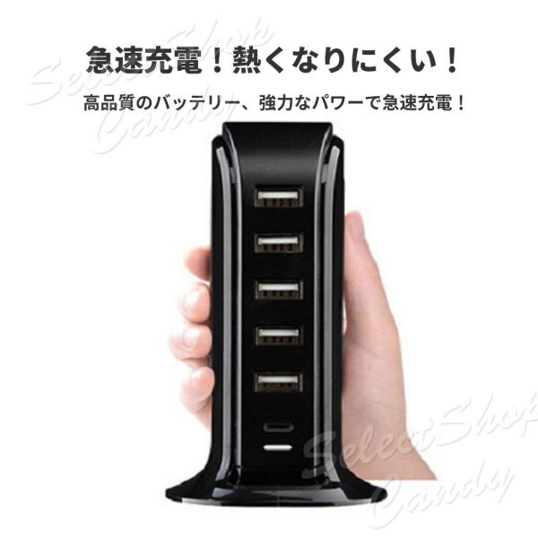 送料無料 6ポート急速充電 ACアダプター 5V 4A USB急速充電器 タワー式 電源タップ USBコンセント LSF-092