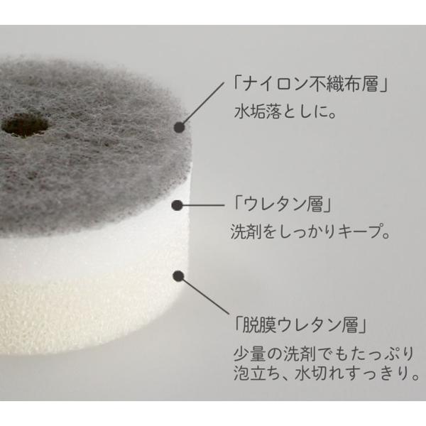 ●脱膜ウレタン層…少量の洗剤でもたっぷり泡立ち、水切れすっきり。