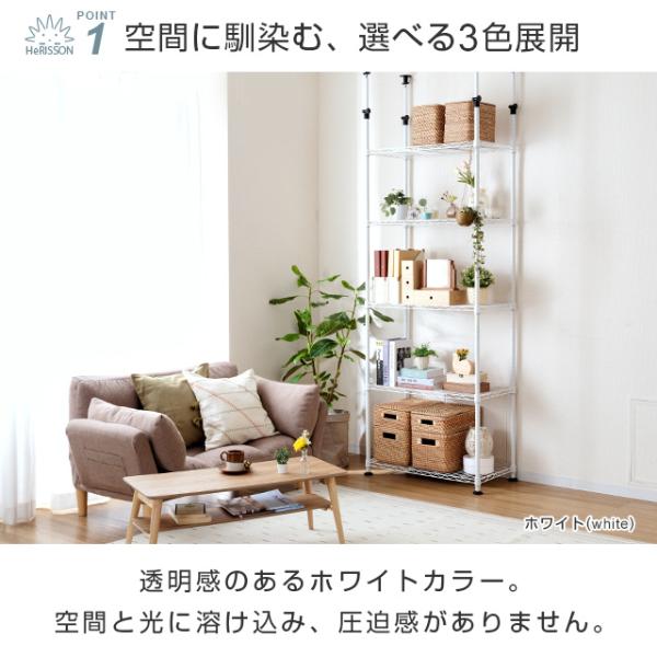 突っ張りラック 幅80cm 5段 ルミナスラテ ホワイト 白 おしゃれ スリム スチールラック 壁面収納 収納棚 納戸 幅85×奥行45×高さ221-248cm EHE80185T