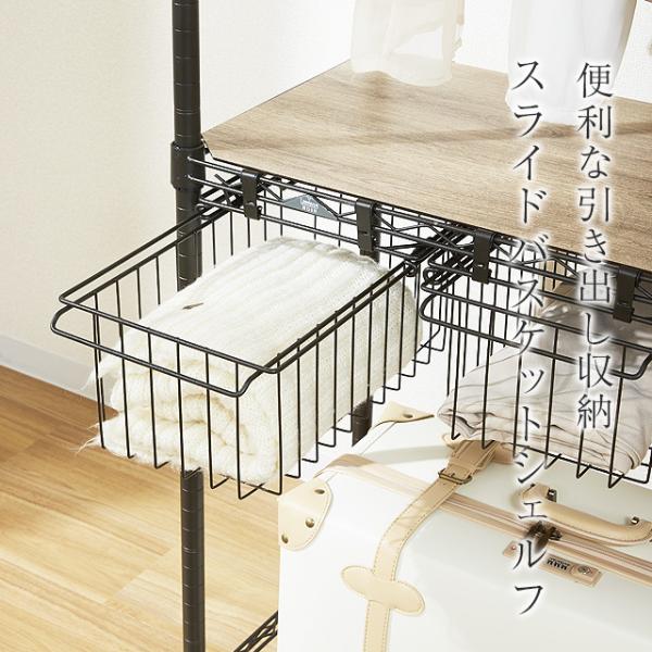 ※スライドバスケットはスチールシェルフに取り付けてご使用ください。