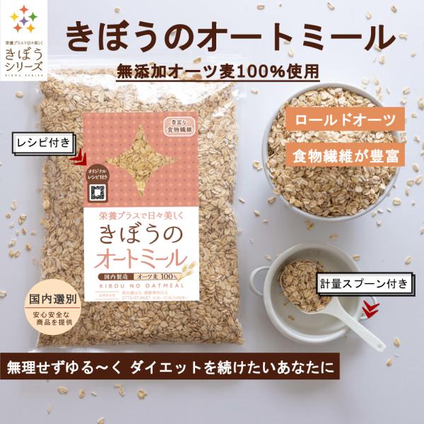 ロールドオーツ オートミール 4kg(800g×5袋) 計量スプーン レシピ付き 無添加 食物繊維 オーツ麦 ダイエット 置き換え 訳あり 雑穀 送料無料 シリアル 腸活