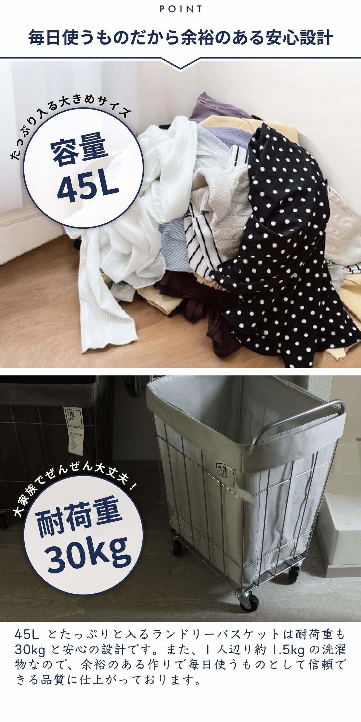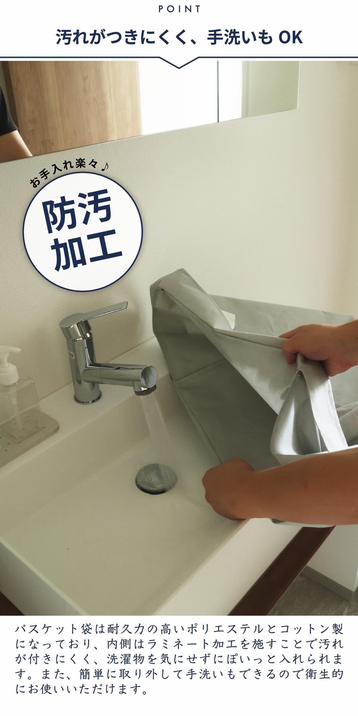 ラミネート加工を施しておりますが、手洗いが可能。生地に汚れが付着しづらく、汚れた洗濯物などを入れても安心して使い続けることができます。キャスター付きはお部屋間の移動も楽に出来るので、体にも負担を掛けることが無く、スムーズに運ぶことが出来ます。