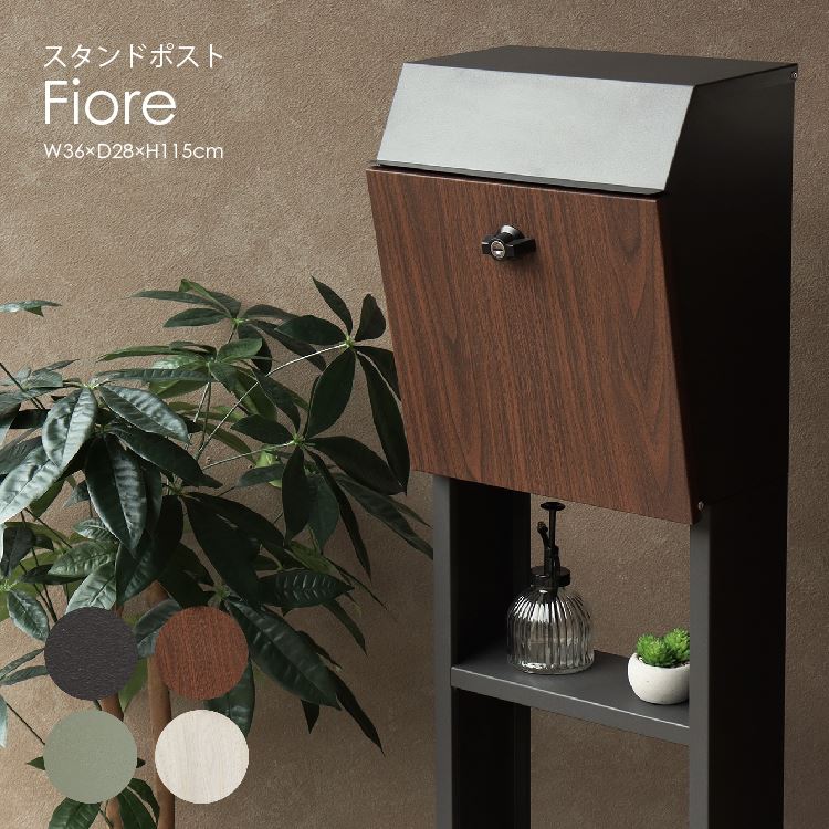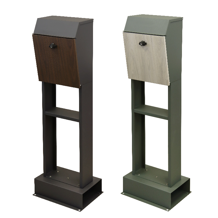 スタンドポスト フィオーレ 置き型 棚板付き おしゃれ 一戸建て マンション 郵便ポスト 鍵付き 木目調 ブラウン ダークグレー グリーン