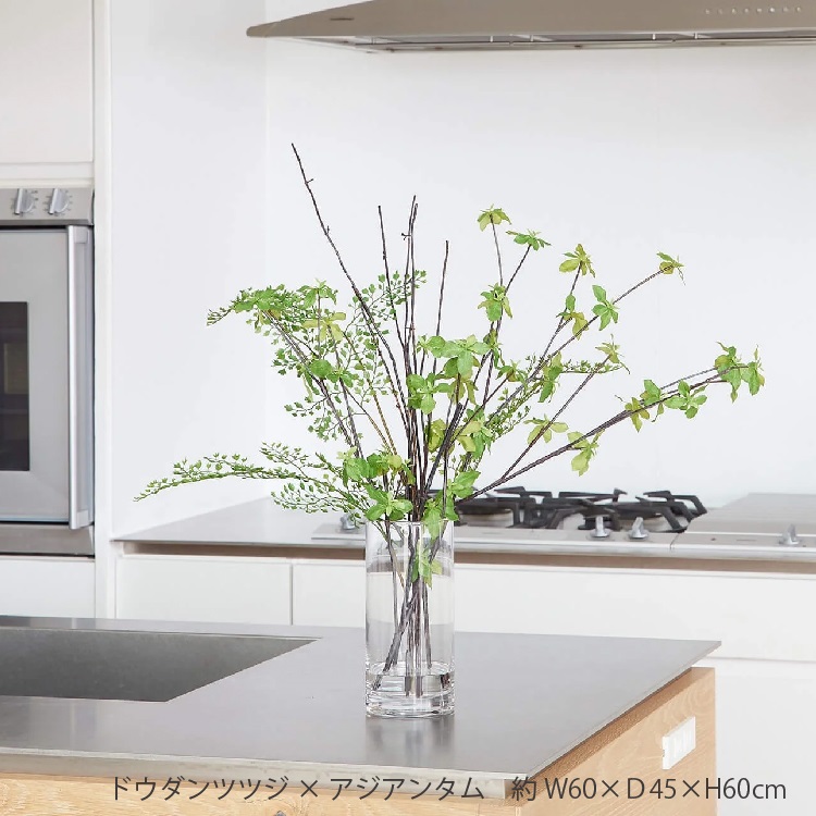 フェイクグリーン 人工観葉植物 アジアンタム ドウダンツツジ 造花 ガラス花瓶付き フェイクウォーター インテリア 水やり不要 プレゼント 母の日 おしゃれ