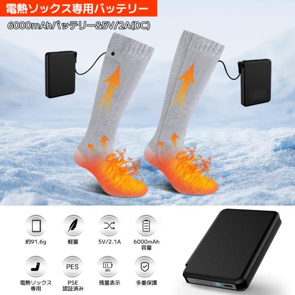 電熱ソックス 専用バッテリー 6000mAh×2 大容量 USB バッテリー 電熱靴下 スキー 釣り バイク 自転車 登山 通勤通学 男女兼用 PSE認証済 加熱ソックス用