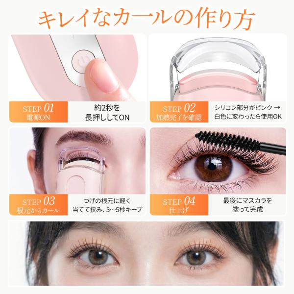 あたたかくなるシリコンパッドでまつ毛をやさしくホールドし、自然な仕上がりをサポートします。