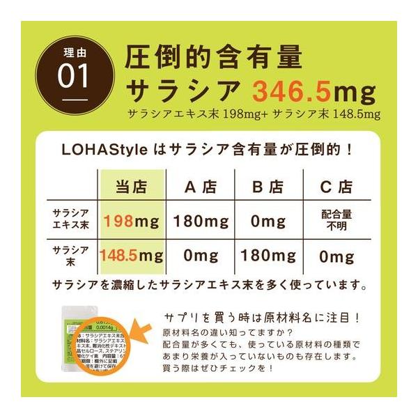 ・サラシアの圧倒的含有量!1粒あたり346.5mgのサラシアを配合