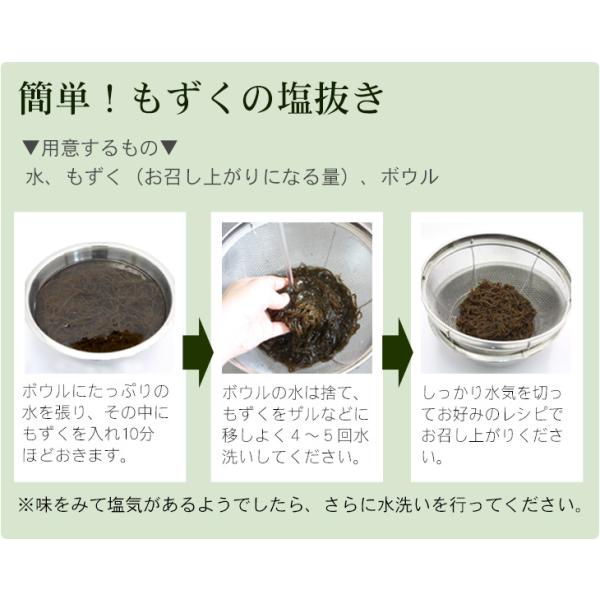 塩、 水、 もずく(お召し上がりになる量)、 ボウル