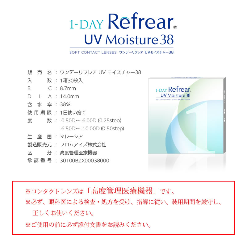 ワンデーリフレアuvモイスチャー38(30枚入)【2箱】1day refrear コンタクト 潤い成分配合 UVカット コンタクトレンズ 1day