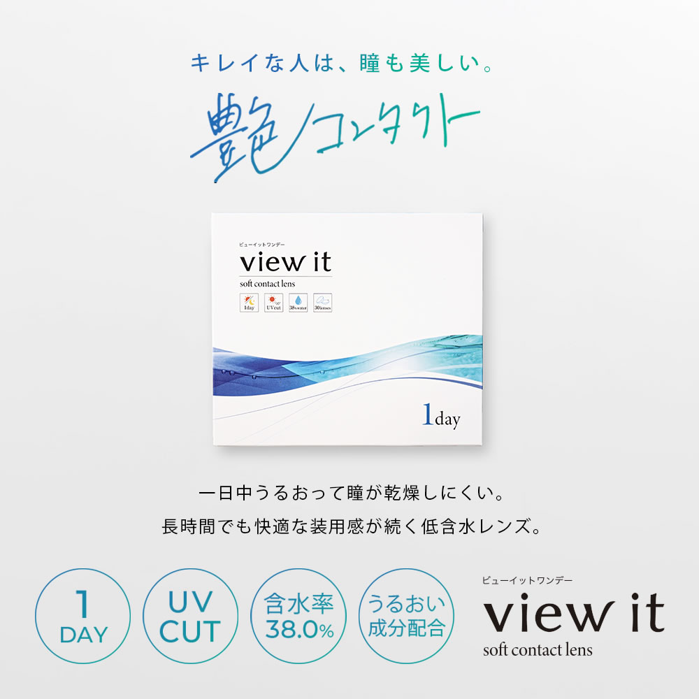 コンタクトレンズ 1day ビューイット ワンデー(30枚) 【2箱】両眼1ヵ月分 BC8.7 DIA14.0 ポスト投函メール便 潤い成分配合 UVカット クリアな視界
