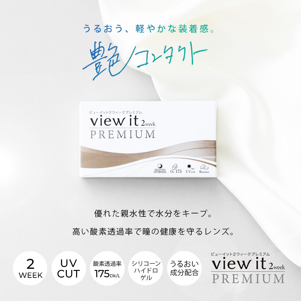 ビューイット コンタクトレンズ 2week PREMIUM(6枚)【2箱】酸素透過率(175)シリコーンハイドロゲル UVカット 潤い成分配合 含水率47.0% DIA14.0 BC8.7
