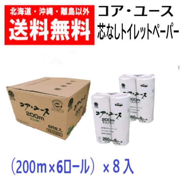 春日製紙 コア・ユース トイレットペーパー シングル 200m巻×48ロール 日本製 送料無料 1ケース