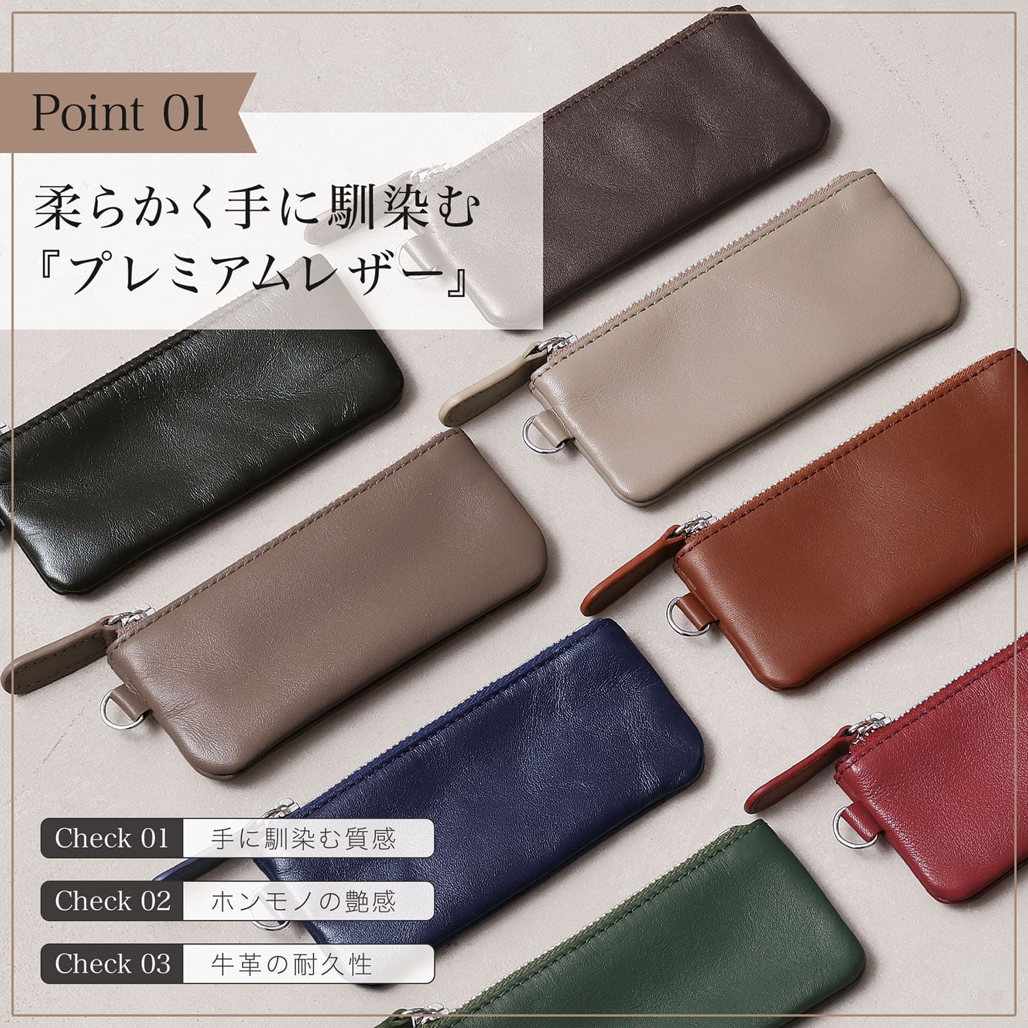 カラー:ロイヤルブラック、グレージュ、レトロキャメル、ダークネイビー、ディープグリーン、バーミリオンレッド、ダークブラウン、エトープ