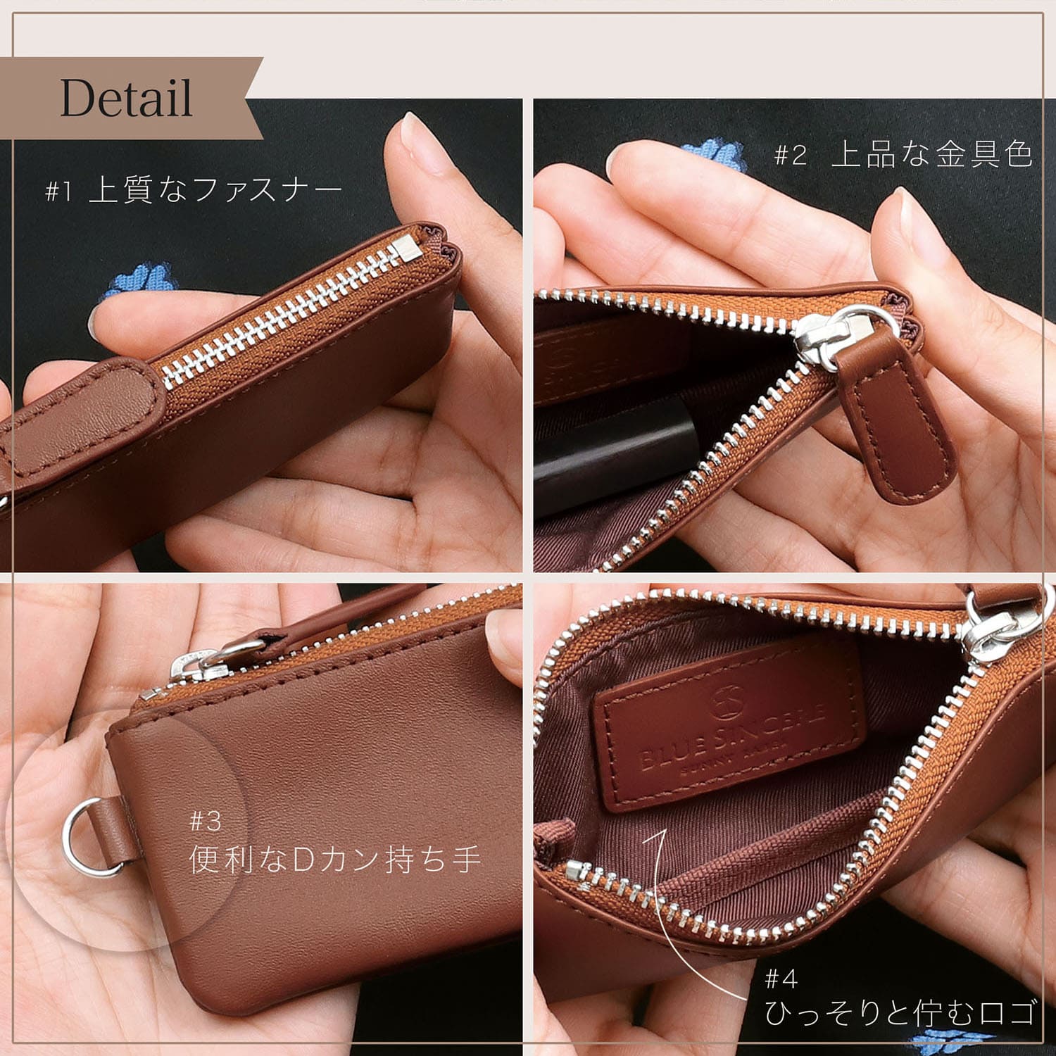 「印鑑を2~3本まとめてスマートに持ち歩きたいけど、ちょうどいいサイズのケースがない…」「合皮のケースはすぐ劣化して汚れてしまう」「100均の印鑑ケースを使ってるけど、もっと気分が上がる上質なものに変えたい」そんなお悩みはありませんか?ブルーシンシアでは、2~3本までの印鑑を美しく収められる専用設計の印鑑ケースをご用意しました。(法人の印鑑は1~2本程度)外装には、当ブランドオリジナルのプレミアムレザーを採用。上品な質感と高い耐久性で、使うたび手に心地よさと満足感を与えてくれます。ビジネスシーンでふと印鑑を取り出す瞬間も、さりげない上質感を演出。「見えない部分にもこだわる」そんなあなたにふさわしい、機能美と品格を備えた印鑑ケースです。