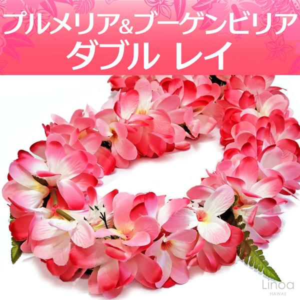 フラダンス レイ プルメリア アロハ ( ピーチ ピンク ) ハワイアン 105cm 花びら2種類使用