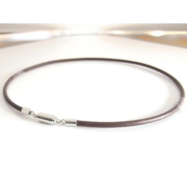 本革 レザー チョーカー マグネット式 (ダークブラウン こげ茶) 太さ2mm 長さ40cm〜55cm
