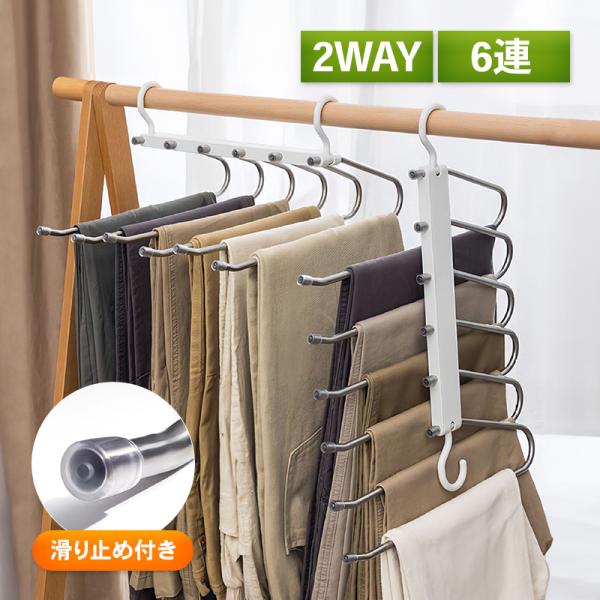 ズボンハンガー 6連 スラックスハンガー ステンレス 収納 衣類 ズボン スラックス クローゼット 便利 ハンガーラック パンツ 滑り止め 頑丈 耐久性 折りたたみ