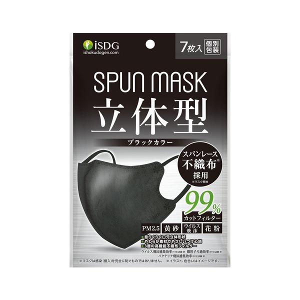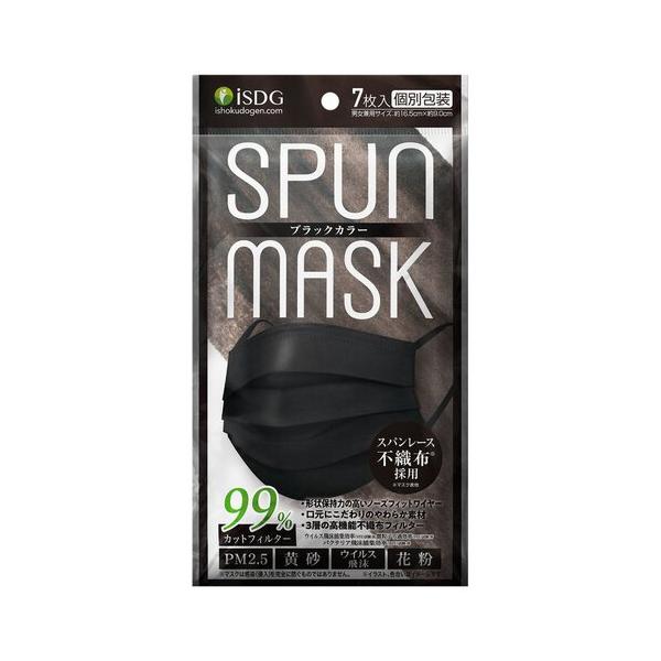 SPUN MASK スパンレース 不織布カラーマスク ブラック 7枚入 花粉 マスク ウィルス