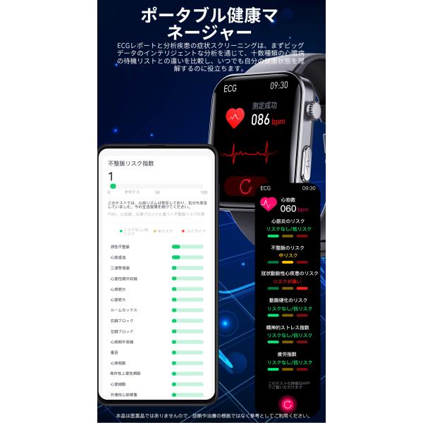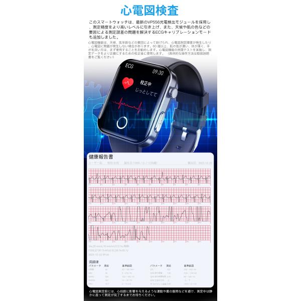 スマートウォッチ 心電図 血圧 心拍 通話機能 着信通知 血中酸素 血液 体組成分析 呼吸率 体温 音楽・カメラ制御 SOS機能