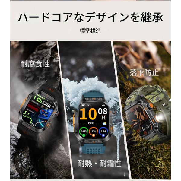 GPS タフネス スマートウォッチ 軍用規格 コンパス 高度計 懐中電灯 2.01インチ大画面 通話機能 3ATM防水 登山 キャンプ アウトドア 日本語対応