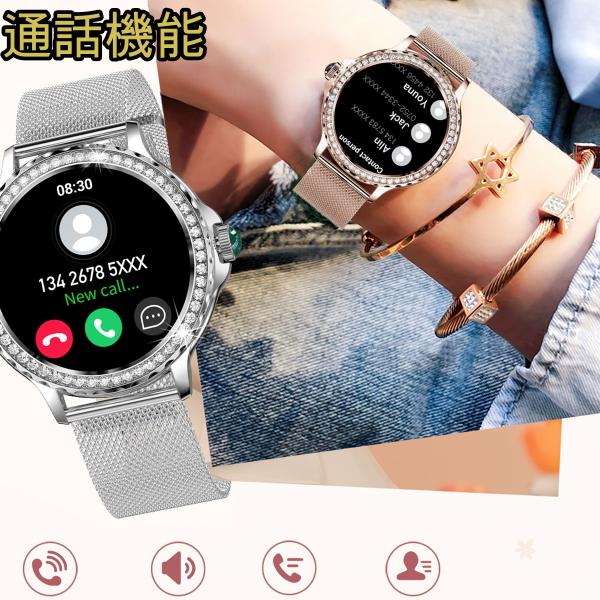 スマートウォッチ レディース 女性用 通話機能 血中酸素 生理 女性周期 母の日 キラキラ プレゼント 腕時計 健康管理 睡眠検測 心拍数 LINE 着信通知 生理周期
