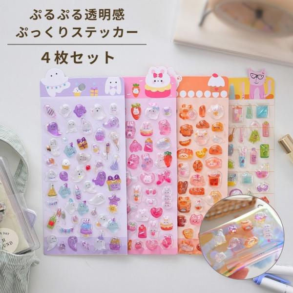 透明ぷくぷくシール 3D 立体 エポキシシール 透明 キラキラ ステッカー 小さめ おばけ ねこ 食べ物 パン スイーツ 動物 ドロップ 宝石 シール帳 スマホ デコ