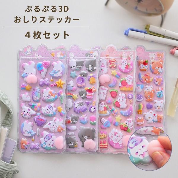 おしり ぷにぷに シール 4枚セット 3D立体 シール どうぶつ おしりシール パステルカラー ぷっくり ぷくぷく シール お尻ステッカー うさぎ くま デビル
