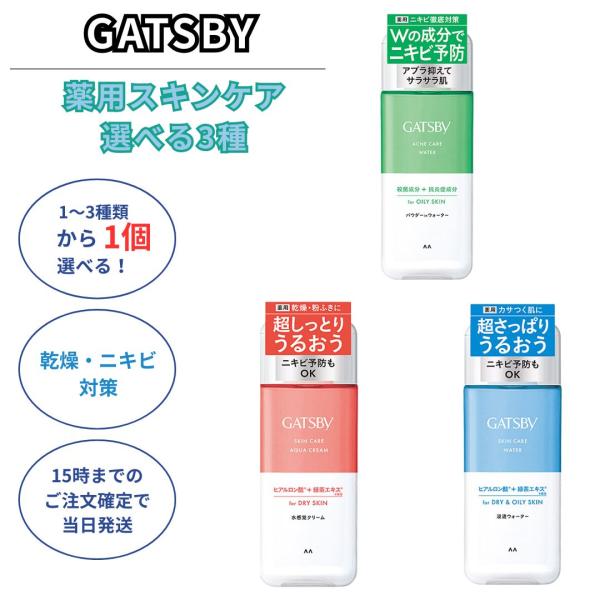 ギャツビー 化粧水 メンズ ニキビ 薬用 アクネケア スキンケア ウォーター アクアクリーム パウダーイン 3種類から選べる1個 スキンケアウォーター