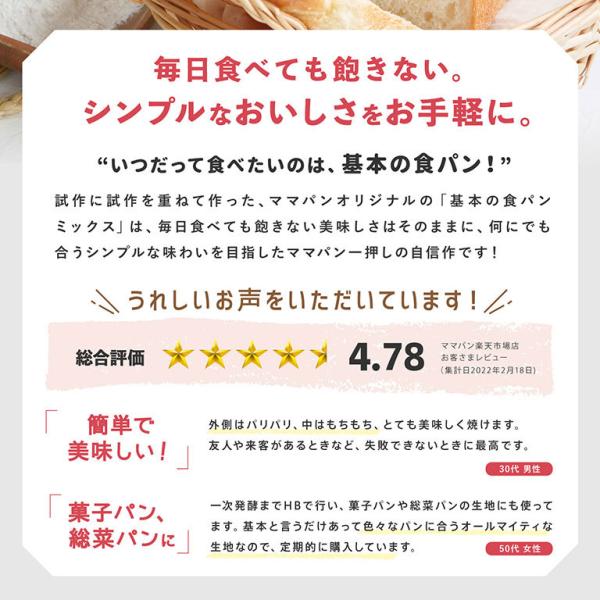 毎日食べたくなるようなプレーンタイプのママパンオリジナル食パンミックスです。