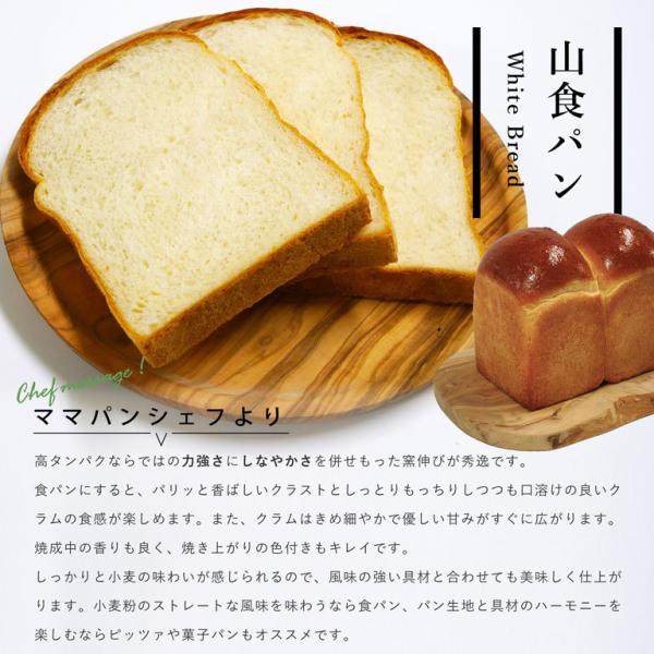 タンパク質含有量が多く、パンの焼き上がりは香ばしく、ふっくらとしてモチモチの食感となります。パン用小麦粉として評価の高く、数多くのベーカリーでご利用されています。