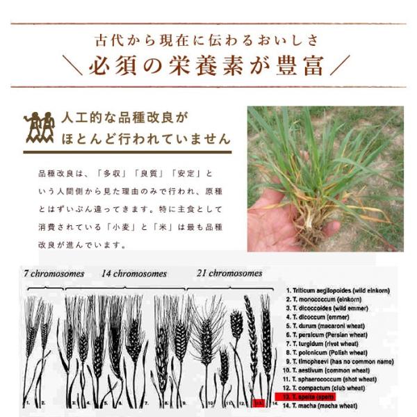 現在の普通小麦の原種にあたる、スペルト小麦を使った小麦粉です。