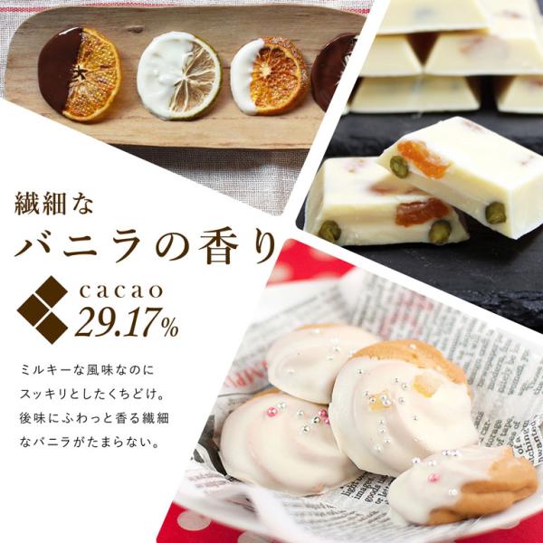 ココアバター以外の代用油脂を一切使用せず作られた、ベルギー産の本格的なホワイトチョコレートです。