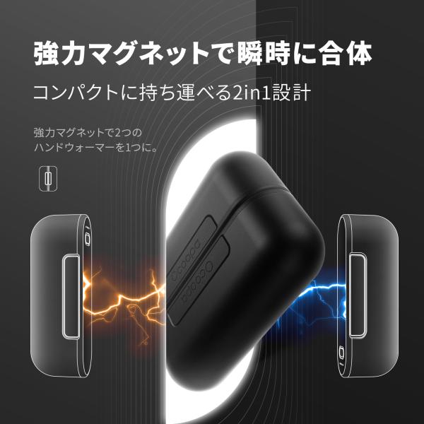 マグネットでパチッと分離できるから、左右のポケットに1つずつ入れて両手を同時に温めることができます。