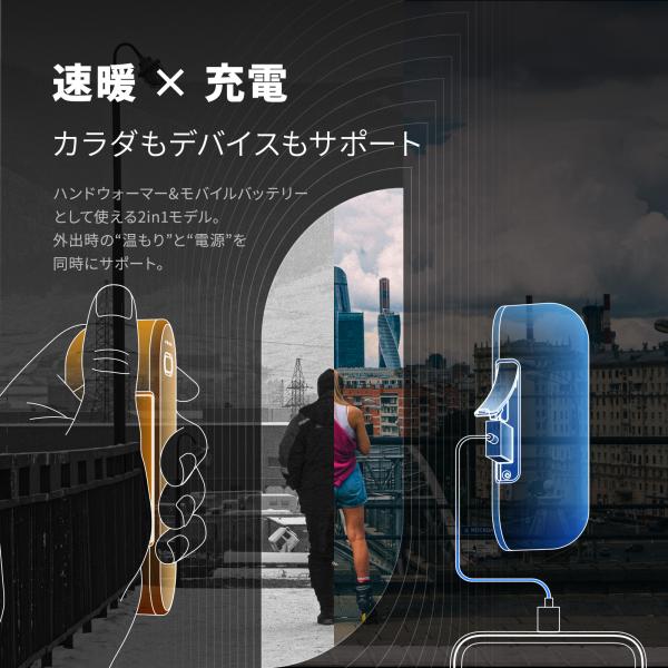 【特徴3:カイロなのにスマホ充電もOK!荷物を減らせる】