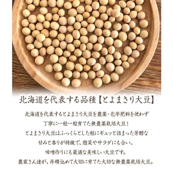 北海道を代表する、とよまさり大豆を農薬・化学肥料を使わず丁寧に一粒一粒育てた無農薬栽培大豆!煮豆、お味噌や豆乳におススメ。レシピ付き!