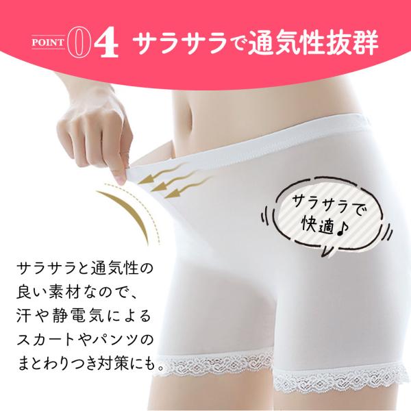 インナーのチラ見え防止や透け防止などに欠かせないペチパンツ。なめらかな肌触りの良い素材で、快適にオシャレをサポート。見えても安心なシンプルデザイン&使いやすいベーシックカラー。伸縮性の高い薄手素材なのでどんなボトムスにも合わせられます。サラサラと通気性の良い素材なので汗や静電気によるスカートやパンツのまとわりつき対策にも。かさばらないのでご旅行にもオススメです!