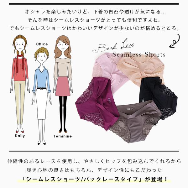 シームレスショーツ レース インナー パンツ レディース 下着 無地 スタンダード ノーマル