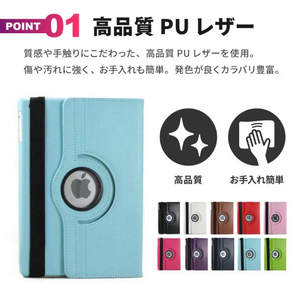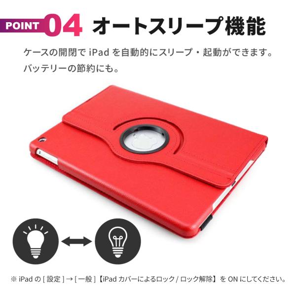 iPadケース スタンド 縦置き 横置き オートスリープ 360度回転 角度調整 レザー