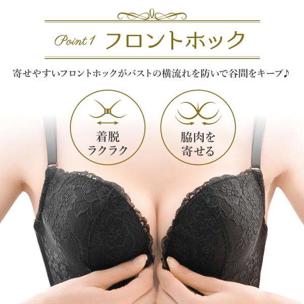 フロントホックだから着脱ラクラクでバストの横流れを防いで谷間をキープ♪