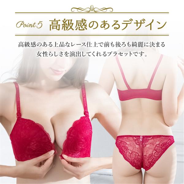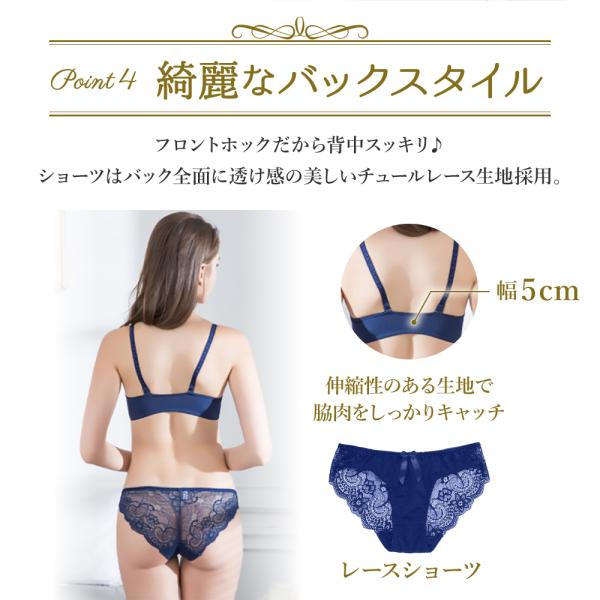 高級感のある上品なレース仕上で前も後ろも綺麗に決まる女性らしさを演出してくれるブラセットです。