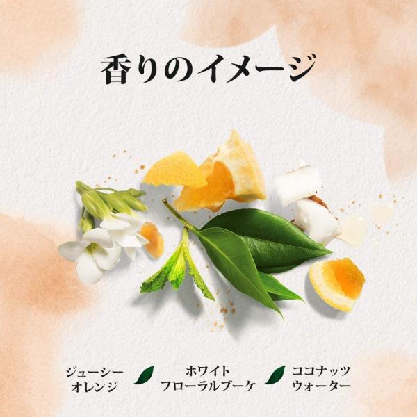 ホワイトフローラル、ココナッツウォーターのフェミニンな香り。