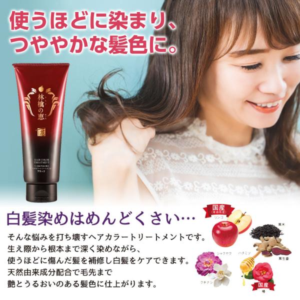 ヘアカラートリートメント 林檎の恵 一花 3本セット 白髪染め ブラック ダメージ補修