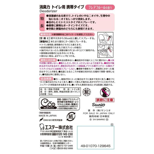 エステー 消臭力 トイレ用 携帯タイプ ミスト スプレー おでかけ 外出 消臭剤 フレアフルールの香り 9mL サンリオ マイメロ | 送料無料