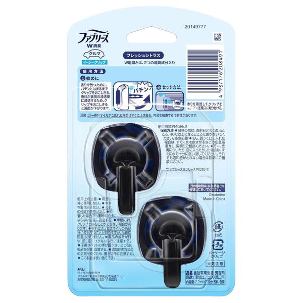 P&G(ピーアンドジー) ファブリーズ イージークリップ フレッシュシトラス 車用 2.2ml×2個入り 2セット 消臭成分最高レベル