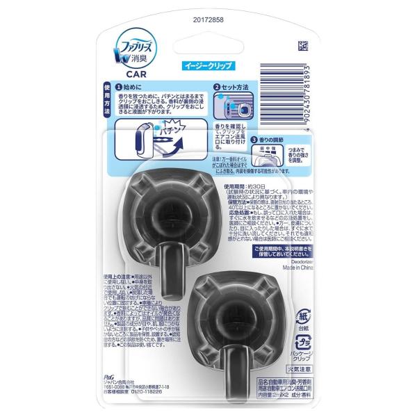 P&G(ピーアンドジー) ファブリーズ イージークリップ 微香 ふんわりしゃぼん 車用 2ml×2個入り 2セット 消臭成分最高レベル 【送料無料】