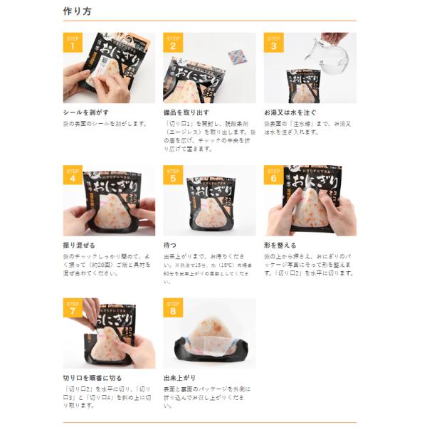 お湯又は水を入れるだけで具材の旨みがギュッとおいしい三角形のおにぎりが出来上がります。